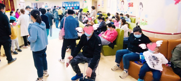 医院的走廊、导医台、大厅还有二楼的门诊处人头攒动,很多外地家长专程从老家带着孩子的历史检查报告赶过来,一大早便候在诊室外。